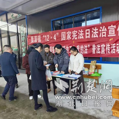 荆楚网(湖北日报)(通讯员 郑成)“姐姐,买山货的同时,你也应该读读宪法,这些规定与我们的土地纠纷、邻里纠纷息息相关!”近日,是荆门市东宝区里西镇花屋场村山货市场的集市日。拥挤的市场透着一抹“法治的亮丽色彩”。东宝区李西镇司法所配合镇工会,将宪法宣传转移到农村市场,让法治宣传随着山货走进群众生活。